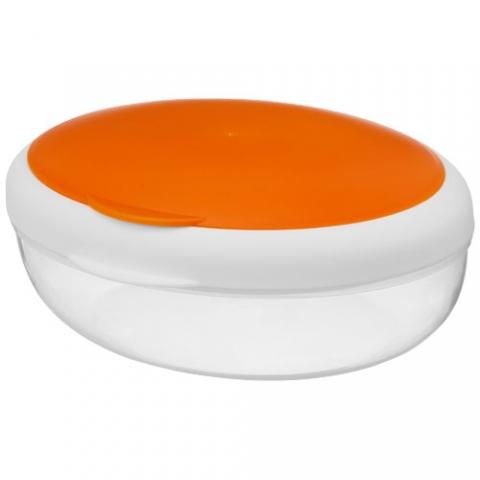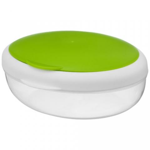 Maalbox Lunch Box. Lunch box with folding fork and condiment pot in lid compartment. Volume is 400 ml. Base is microwave safe. Exclusive design. PP plastic.